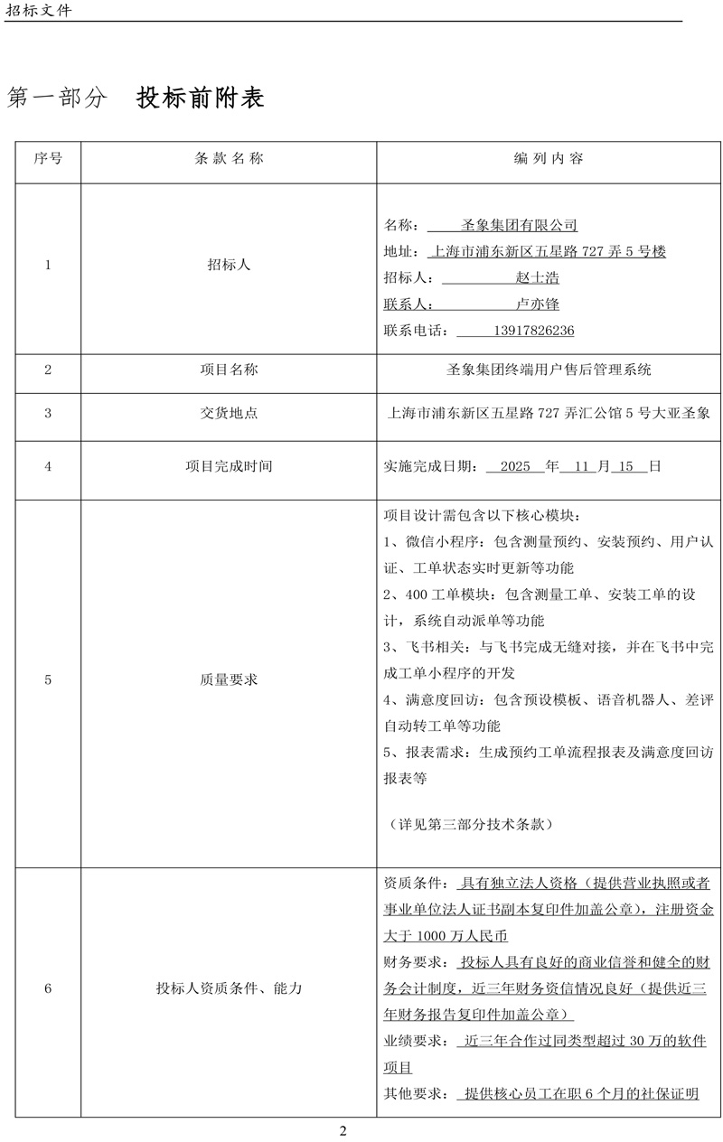 附件:圣象集团终端用户售后管理系统招标文件-0723