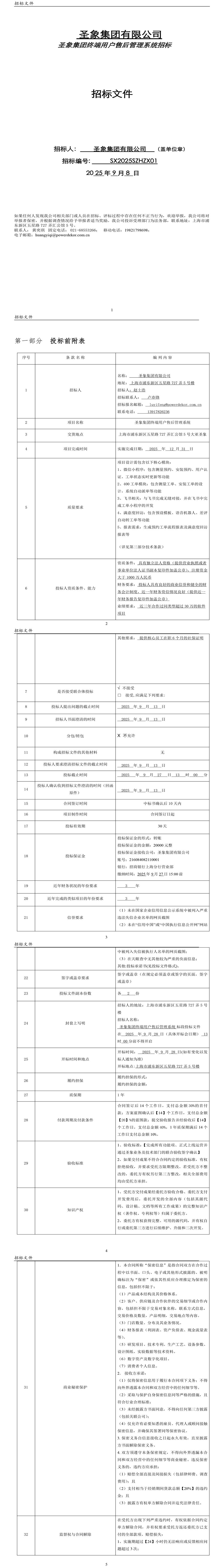 附件:招标文件-圣象集团终端用户售后管理系统-二次发布