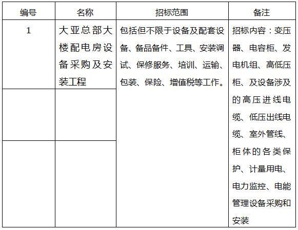 大亚科技集团有限公司总部大楼配电房设备采购及安装工程 招标公告