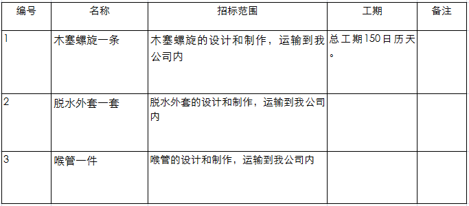 2、 工程规模:提供一套合适肇庆工厂使用的木塞螺旋备件