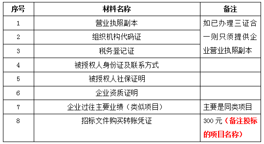 注:以上材料发送至招标人邮箱必须注明投标的项目名称。