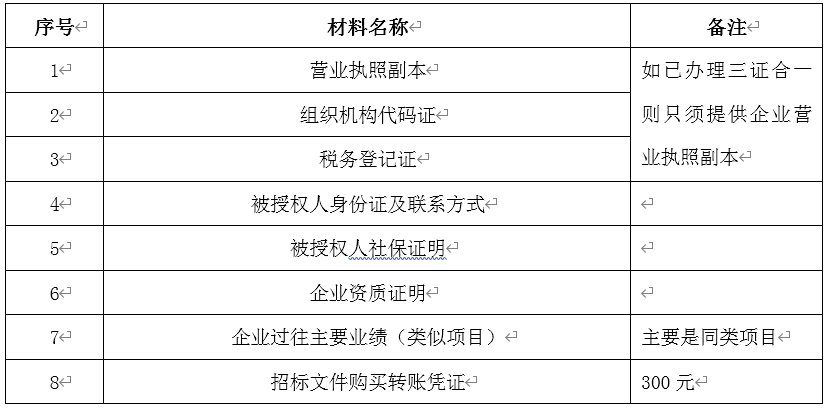 2、 凡有意向参加投标者,请在上述期间内按下表提供报名资料,相关证明文件的原件如无法提供原件则提供复印件加盖公司公章,投标人须将上述资料的扫描件发邮件至招标联系人处进行报名。