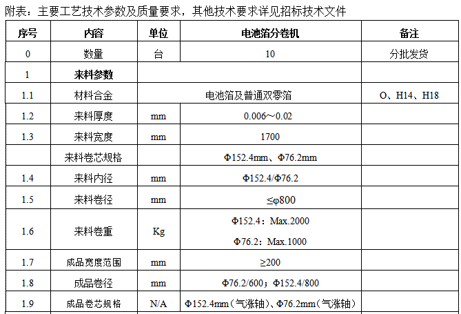 ①、申请人资质要求:电池箔专用分卷机专业设计、制造、安装;