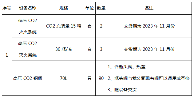本招标项目CO2灭火系统设备采购项目已批准建设,招标人为江苏大亚电子新材料科技有限公司,资金自筹。项目已具备招标条件,现进行公开招标,特邀请有兴趣的潜在投标人(以下简称申请人)提出资格预审申请。