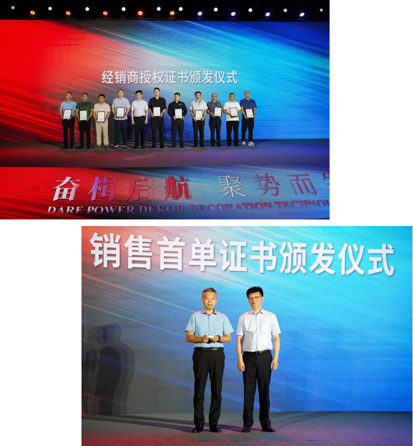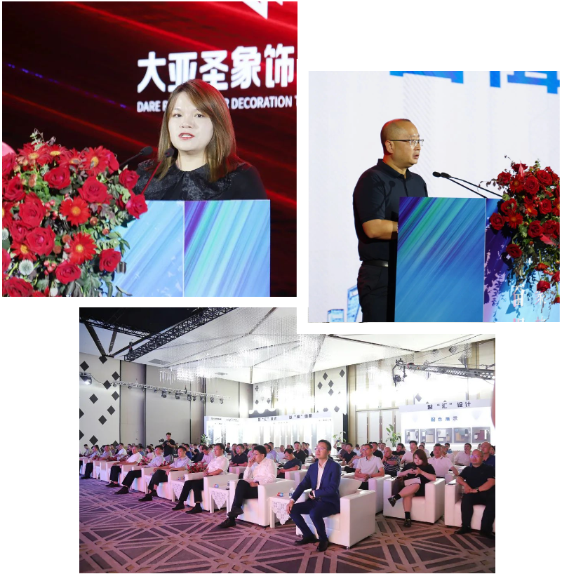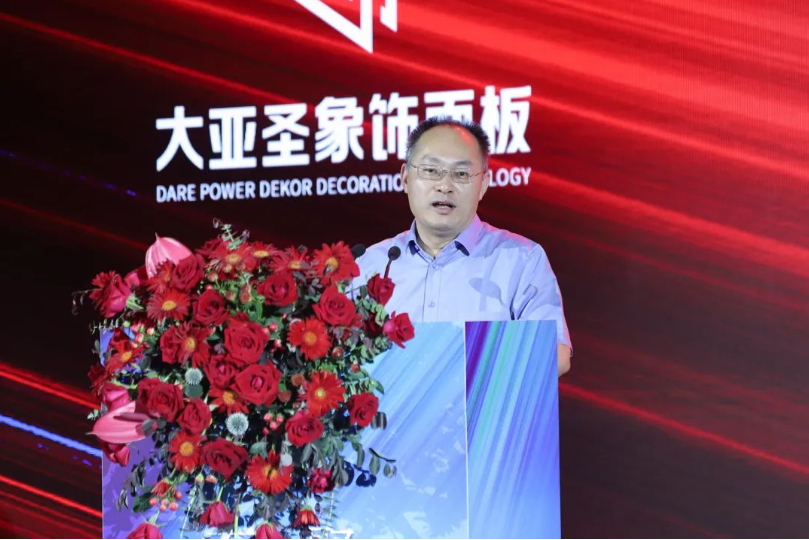 8月1日,大亚圣象饰面板新品发布会在江苏丹阳震撼开启,大亚圣象带着新品启航系列闪耀亮相发布会。国家林草防火司原司长、中国林产工业协会换届领导小组组长、临时负责人周鸿升,中国林产工业协会驻会副会长兼代理秘书长陈天全,中国林科院木材所信息中心主任、中国林产工业协会副秘书长唐召群,大亚集团董事局主席、大亚圣象家居股份董事长陈建军,大亚集团副总裁、大亚人造板集团董事长眭敏,大亚圣象家居股份总裁兼董秘吴谷华,圣象集团副总裁刘海涛,大亚圣象公司代表,各区经销商代表及各界媒体同仁共同出席了本次发布盛会,共同见证新品发布。