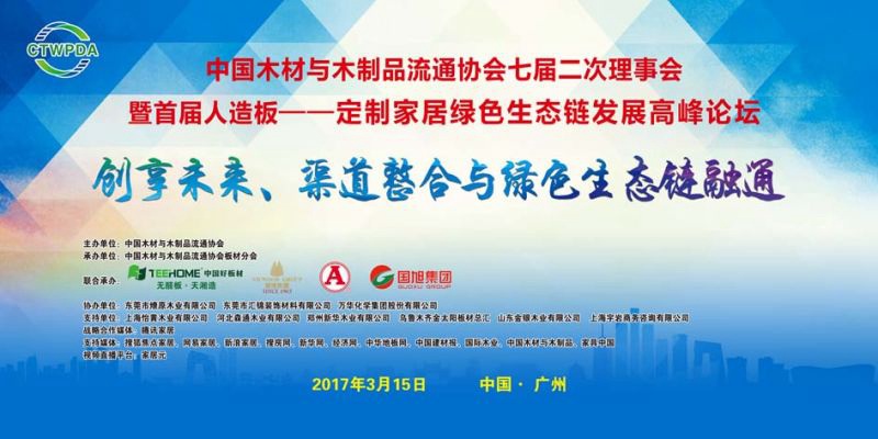 2017年3月15日,中国木材与木制品流通协会在广州召开主题为“创享未来、渠道整合与绿色生态链融通”的首届人造板——定制家居绿色生态链发展高峰论坛。