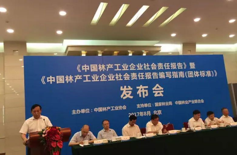 8月2日,《中国林产工业协会社会责任报告》暨《中国林产工业协会企业社会责任报告编写指南(团体标准)》在人民大会堂发布。本次发布会由中国林产工业协会主办,北京林业大学和中国绿色时报承办,并得到了国家林业局和中国林业产业联合会的大力支持。国家林业局领导及有关司局、单位,有关部委,北京林业大学、中国林业科学研究院、大亚人造板集团、吉林森工等15家社会责任报告发布试点企业代表,以及中央在京三十多家重点媒体代表参会。