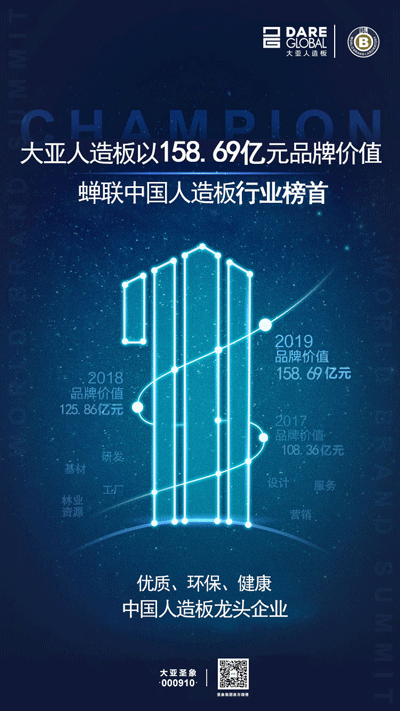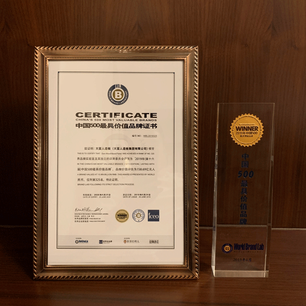 由世界品牌实验室(World Brand Lab)主办的(第十六届)“世界品牌大会”于6月26日在北京举行,会上发布了2019年《中国500最具价值品牌》分析报告。在这份基于财务数据、品牌强度和消费者行为分析的年度报告中,圣象以502.85亿元人民币品牌价值三冠中国家居行业榜首,大亚人造板以158.69亿元品牌价值蝉联中国人造板行业榜首!