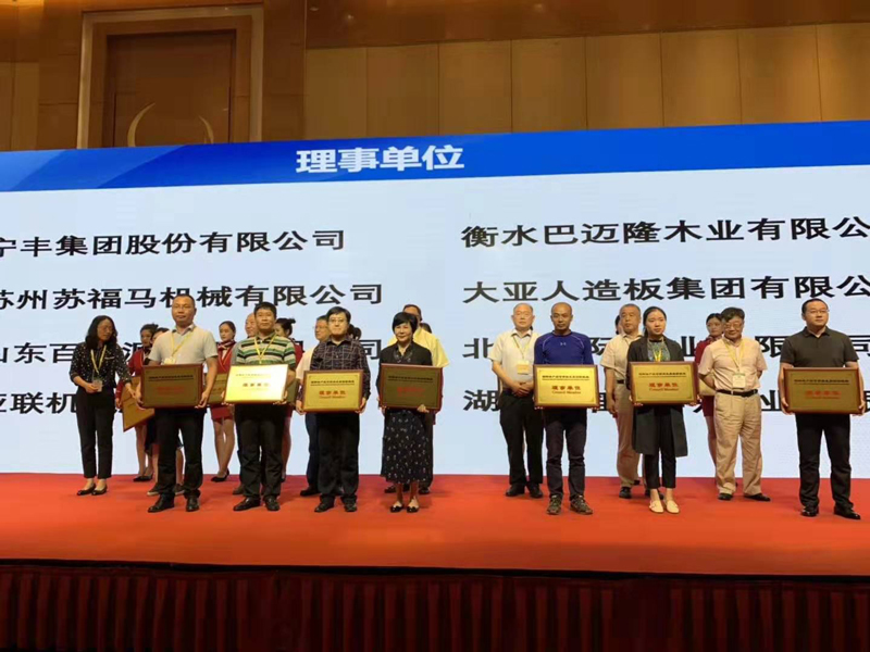 在随后进行的国际林产品可持续发展创新联盟成立仪式上,大亚人造板作为理事单位上台领取荣誉奖牌。
