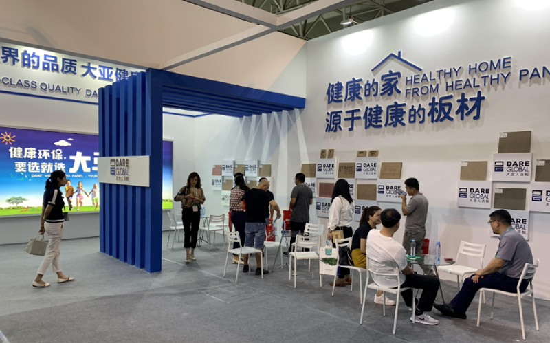 大亚人造板现场展出了无醛刨花板、无醛地板基材、无醛镂铣板、无醛家具纤维板、高防潮刨花板、防潮地板基材、防潮门板、防霉纤维板、防霉刨花板、低吸涨纤维板、低吸涨刨花板、阻燃纤维板、电子线路垫板、鞋跟板等代表人造板行业先进技术水平的产品,吸引了众多客户前来观摩洽谈。