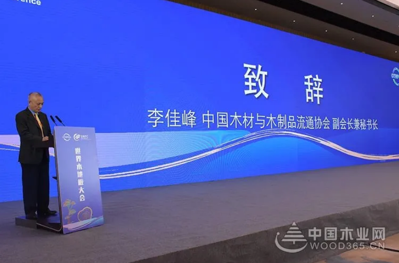 中国木材与木制品流通协会副会长兼秘书长李佳峰致辞,他表示中国地板高速发展近30年取得了辉煌成就,如何向更高层次发展,这是当前每个地板人都必须面对和思考的问题,作为木地板人,要有信心用科技创新引领行业发展,为消费者生产出高品质的产品,在以国内大循环为主体,国内外双循环相互促进的新发展格局下把地板行业做大做强。