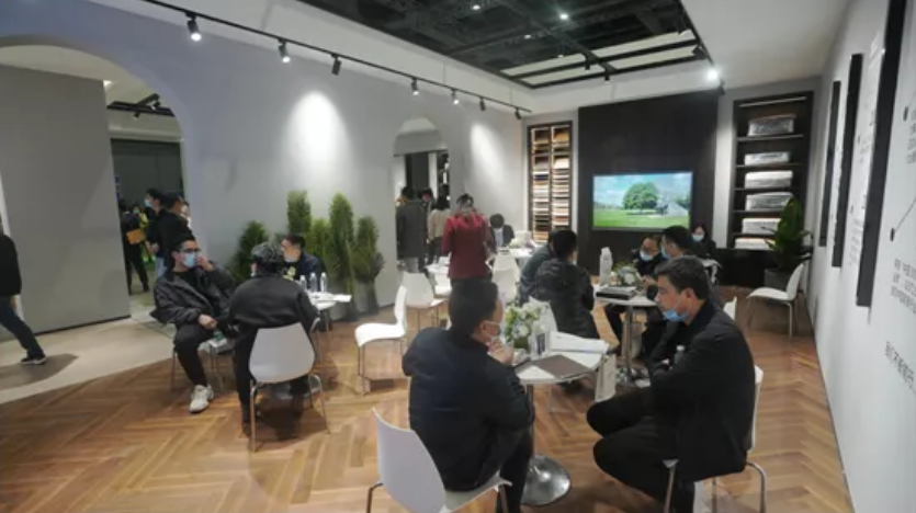 展馆现场,圣象整装设计+和圣象商用地材协同参展,全面展示了圣象多维立体产品架构的体系模式。