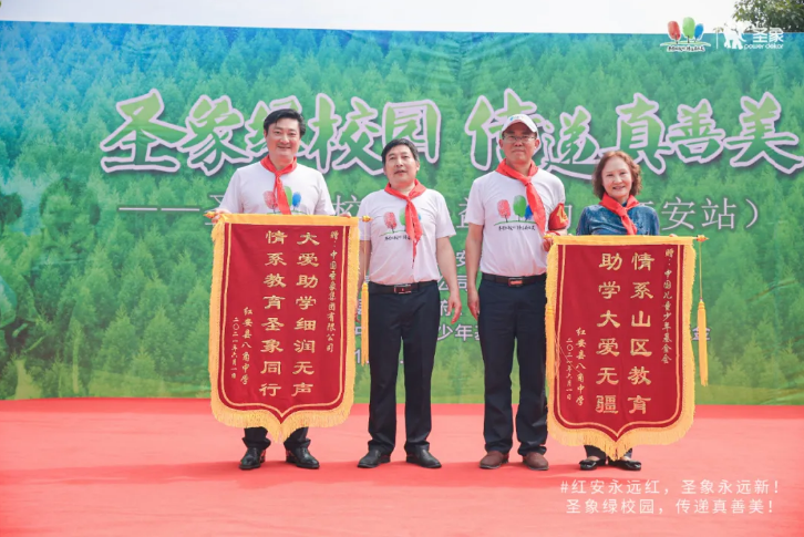 十周年之际,绿校园红安站对圣象来说更是一种激励,红安永远红,圣象永远新!圣象将贯彻新发展理念,企业唯有可持续发展才能积极承担社会责任!圣象将加快构建新发展格局,从地板的产品提供者到生活空间的方案服务商,构建全新的相互协同、齐头并进的六大业务线!圣象将以契合时代发展的新动能,携手爱心人士共同努力,让更多校园拥有更美好的学习生活环境,把更美好的关爱留给小朋友们,将真善美传遍祖国大地!用爱承载·美好生活!
