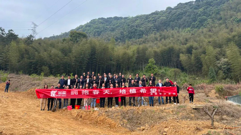 圣象华宇集团积极响应本次植树活动,员工们亲力亲为,在山坡上植下满满的绿意。