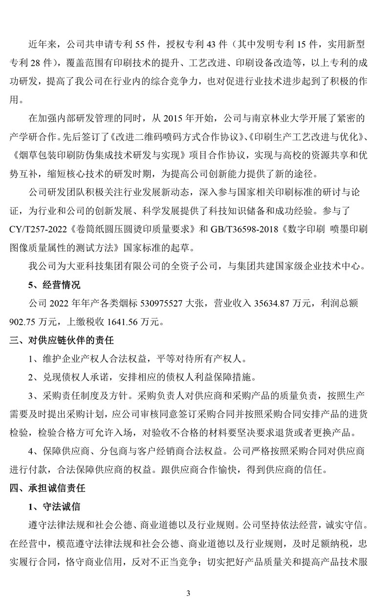 大亚印务2022年度社会责任报告