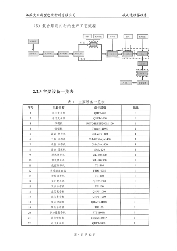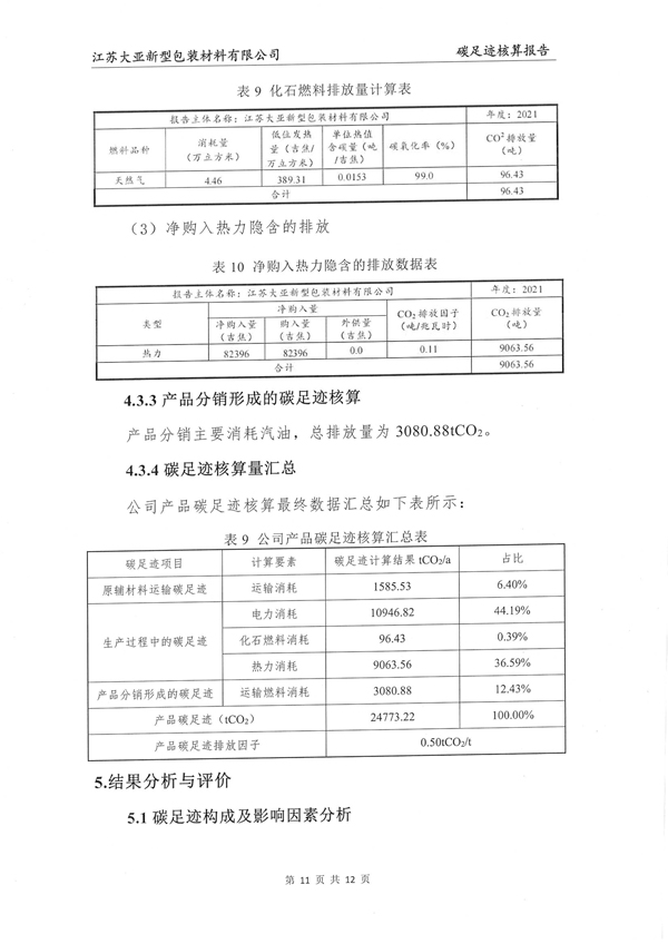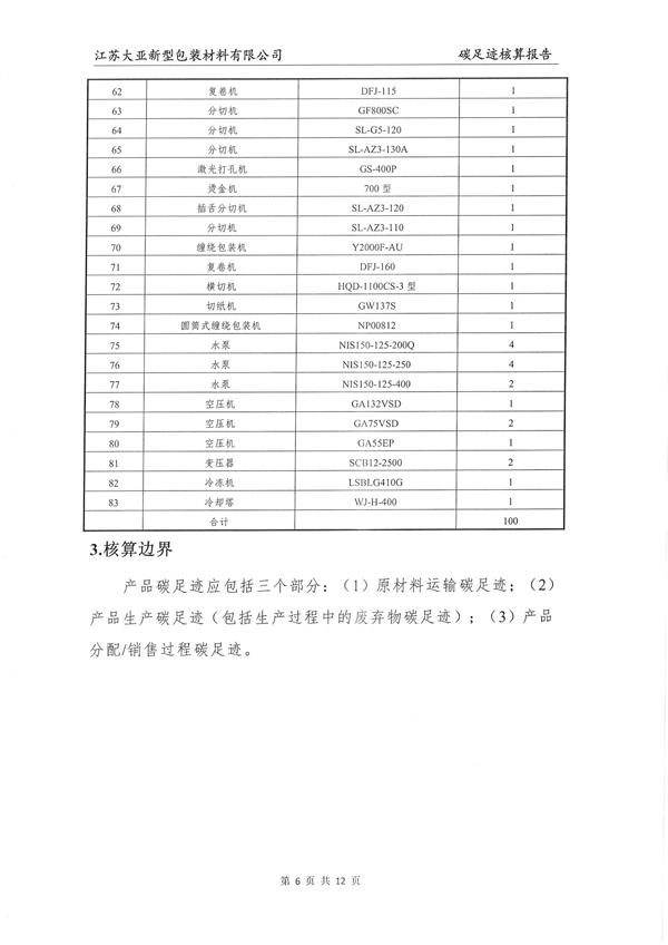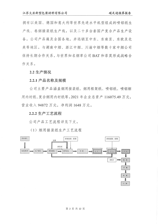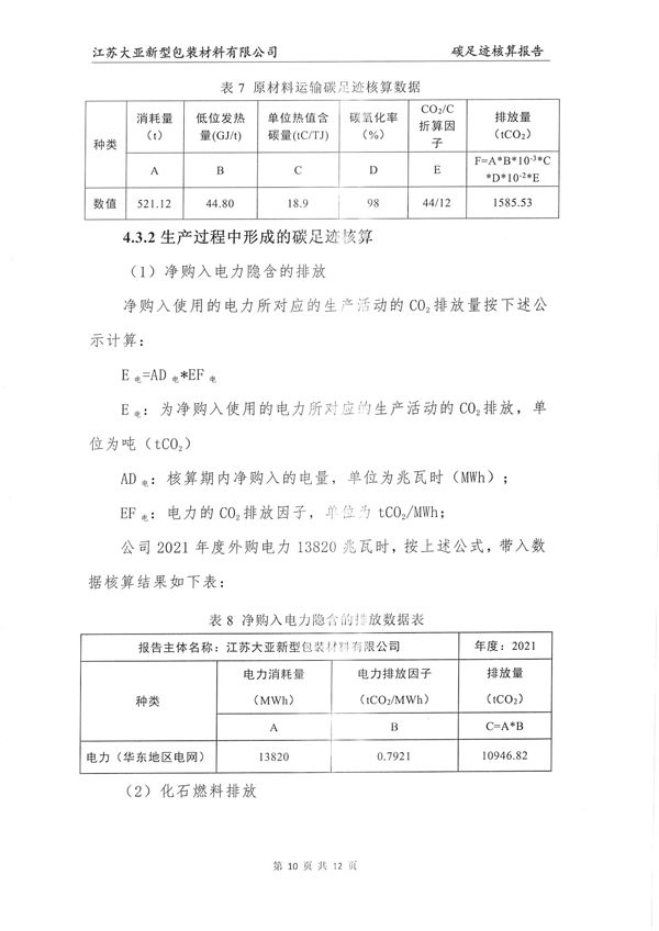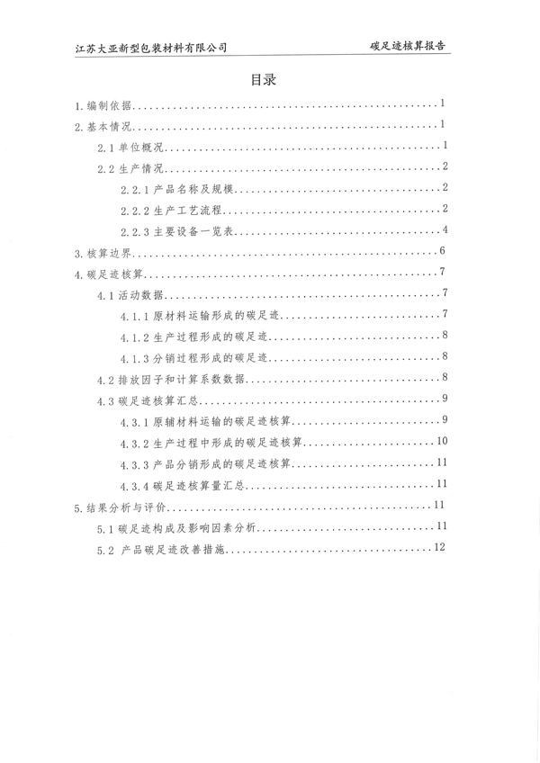 江苏大亚新型包装材料有限公司碳足迹核算报告